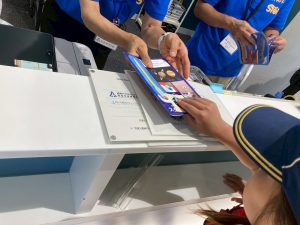 今日は新しい仲間が一人増えました。「ちかいとおきて」も元気に言え素晴らしかったです。セレモニーが終わったらリーダーの車でかかみがはら航空宇宙博物館に向かいました。場内ではスタンプラリー、フライトシュミレーター、航空機見学をして宇宙に学習しました。