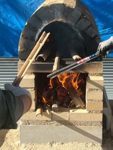 ピザ窯つくり 数年前から歴代ベンチャースカウトによって計画されていたが2024年9月からつくる事に決定しプロジェクトが動き始めたその後11月にスカウト達では出来ない土間コン工事を建設業の団委員にお願いし材料を発注、12月土間コン完成後レンガ割りやモルタルの使い方屋根アーチ作り方の業者勉強会を実施、ベンチャー会議でピザ窯の作り方について調べ設計図を書き、25年8月モルタルが乾く季節を待ち同時期には並行してピザ小屋を作成、週末にはその時に参加できるスカウトでピザ窯を作っていった。11月29日火入れ式を行った。