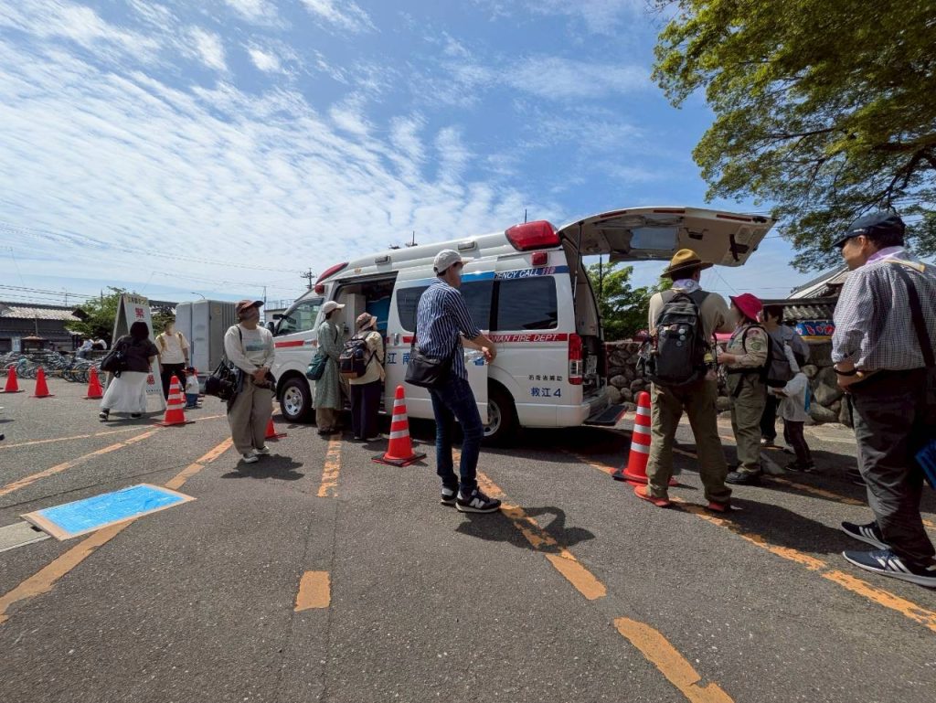 4/19 緑の募金(曼陀羅寺公園)10時から11時 第61回こうなん藤まつり – 江南市観光協会 に募金活動を行いました。藤も満開で天気が良く露店も沢山出ていて非常に混雑していました。救急車も待機していたので迷惑が掛からない様に見学させてもらいました。